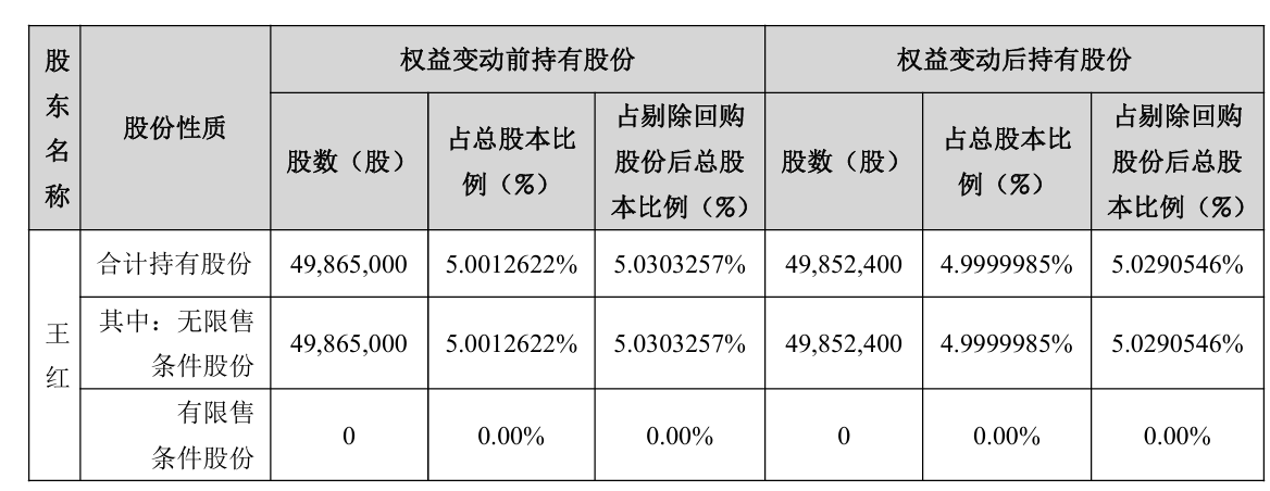 9月26日,国瓷材料表露,王红通过王人集竞价神气转让公司股份1.26万股,其握有公司股份占总股本比例从5.0012622%下落至4.9999985%。