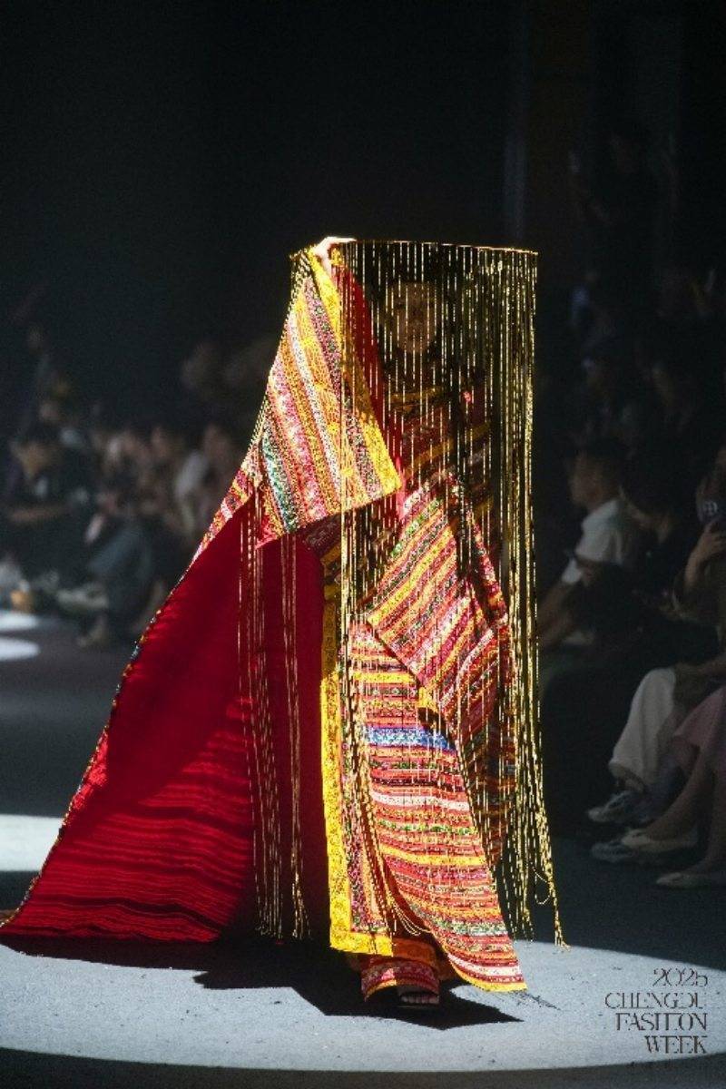 压轴亮相的"羌族文化"主题大秀,"尔玛的嫁衣"成为焦点。品牌筹办师将羌族衣饰中的标记进行现代解构:纹样新解——羊角花、云纹等传统刺绣图案,通过抽象化惩办融入立体剪裁;颜色形而上学——羌族衣饰中的黄、绿、红三色,被赋予现代审好意思解读。
